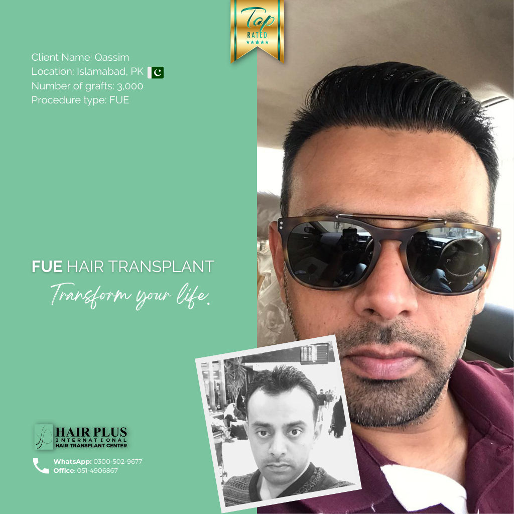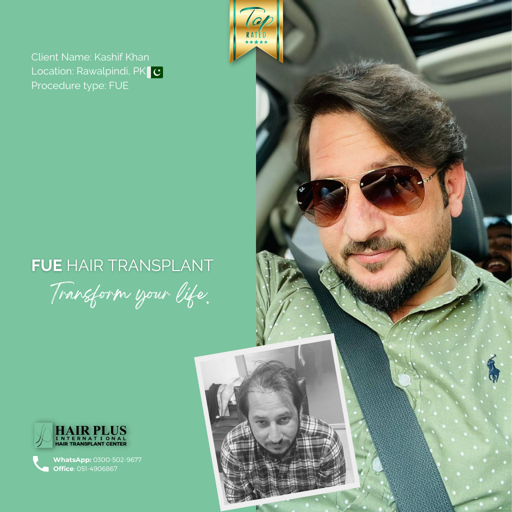 My name is Kashif khan ,I am a squash coach ,in UK ,today i undergone hair transplant from HAIR PLUS hair transplant, I found very friendly,all the staff was qualified. OT was well equipped. my hair transplant was without any pain I was very relax through out the procedure, I recommend hair plus,As it's the best place in KP and Pakistan for best results,my many friends including my elder brother arif got excellent result.